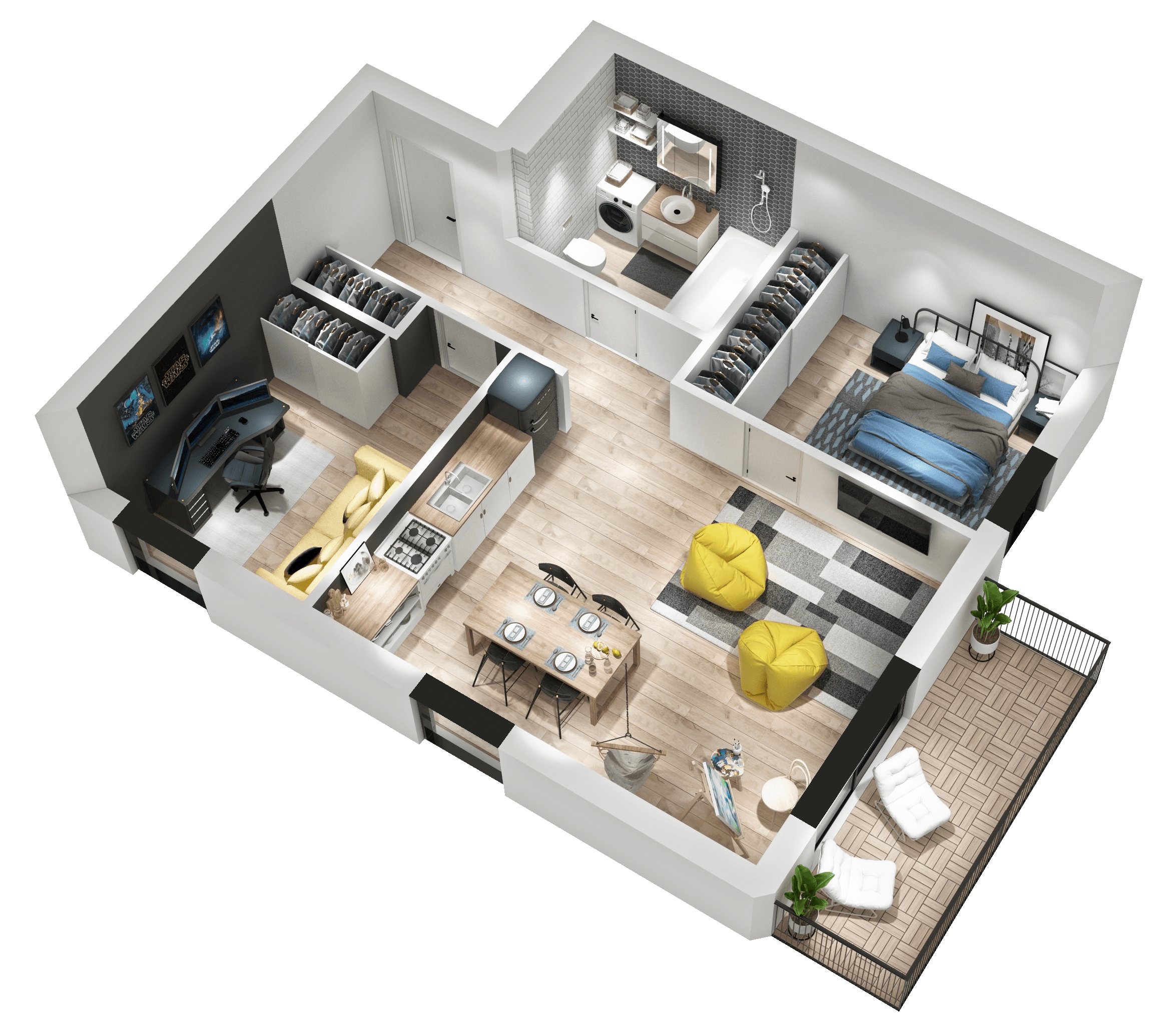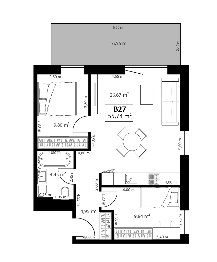 - Plotas 55.74 m2